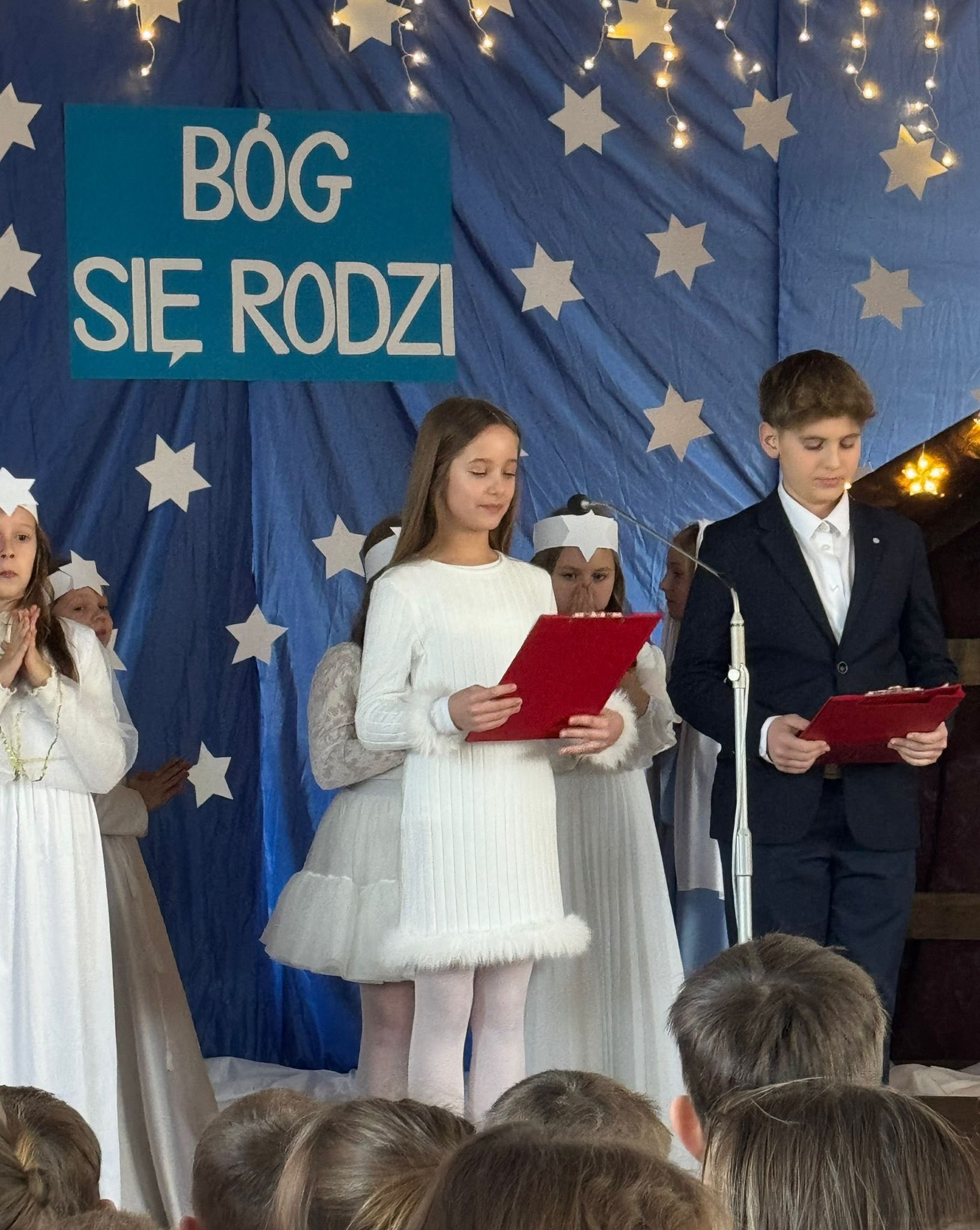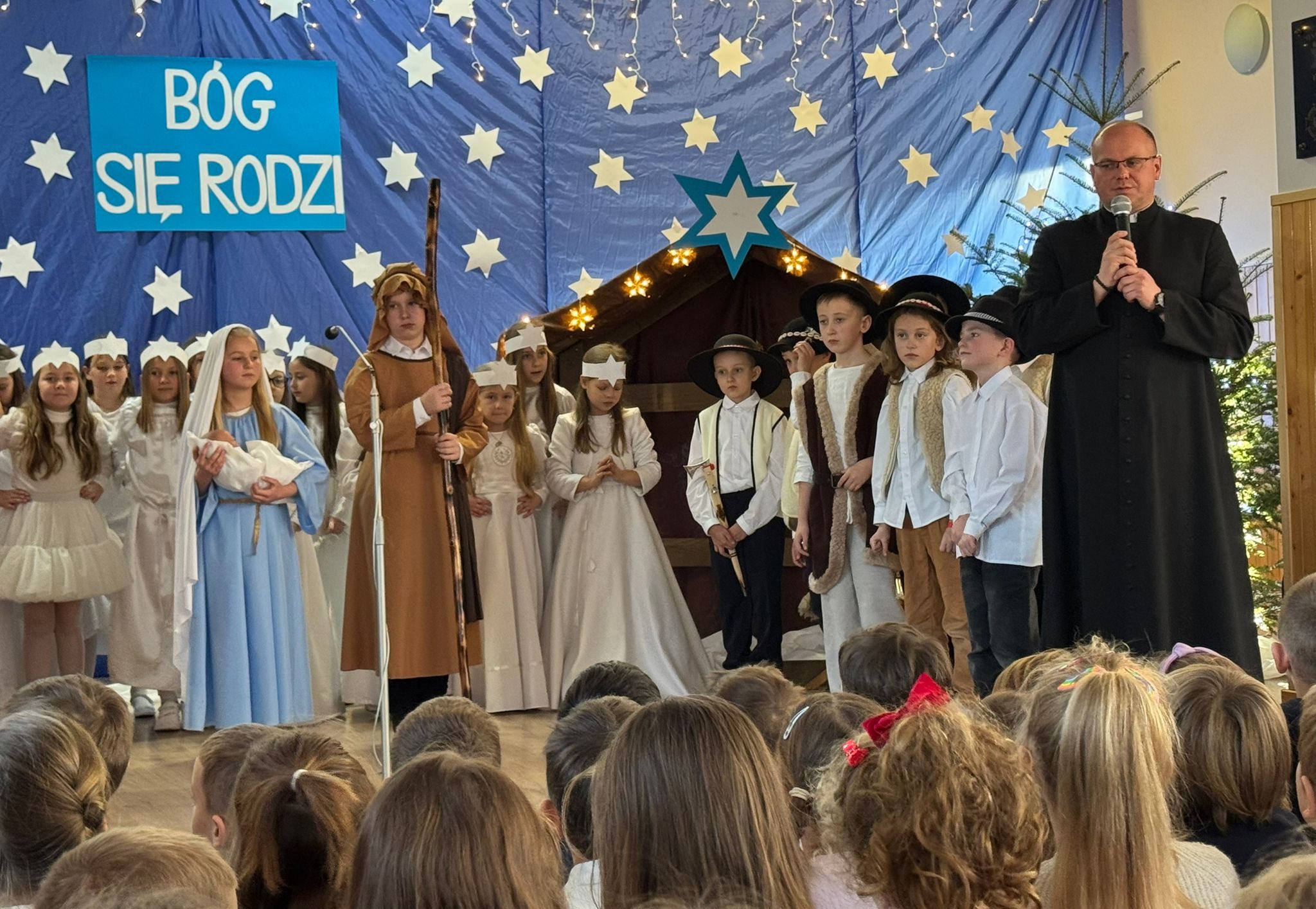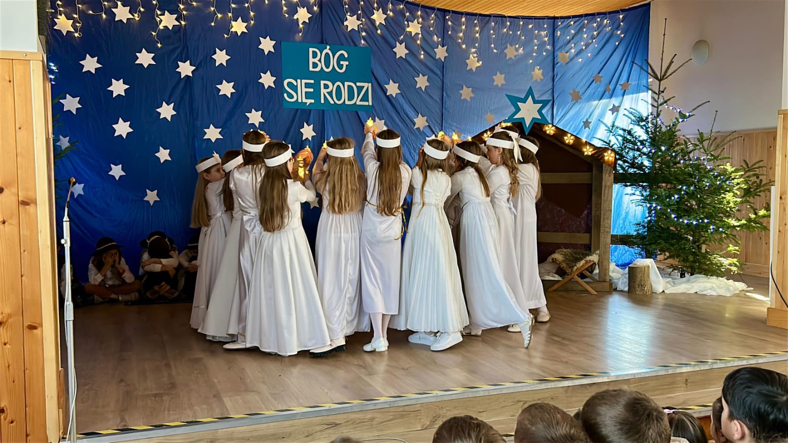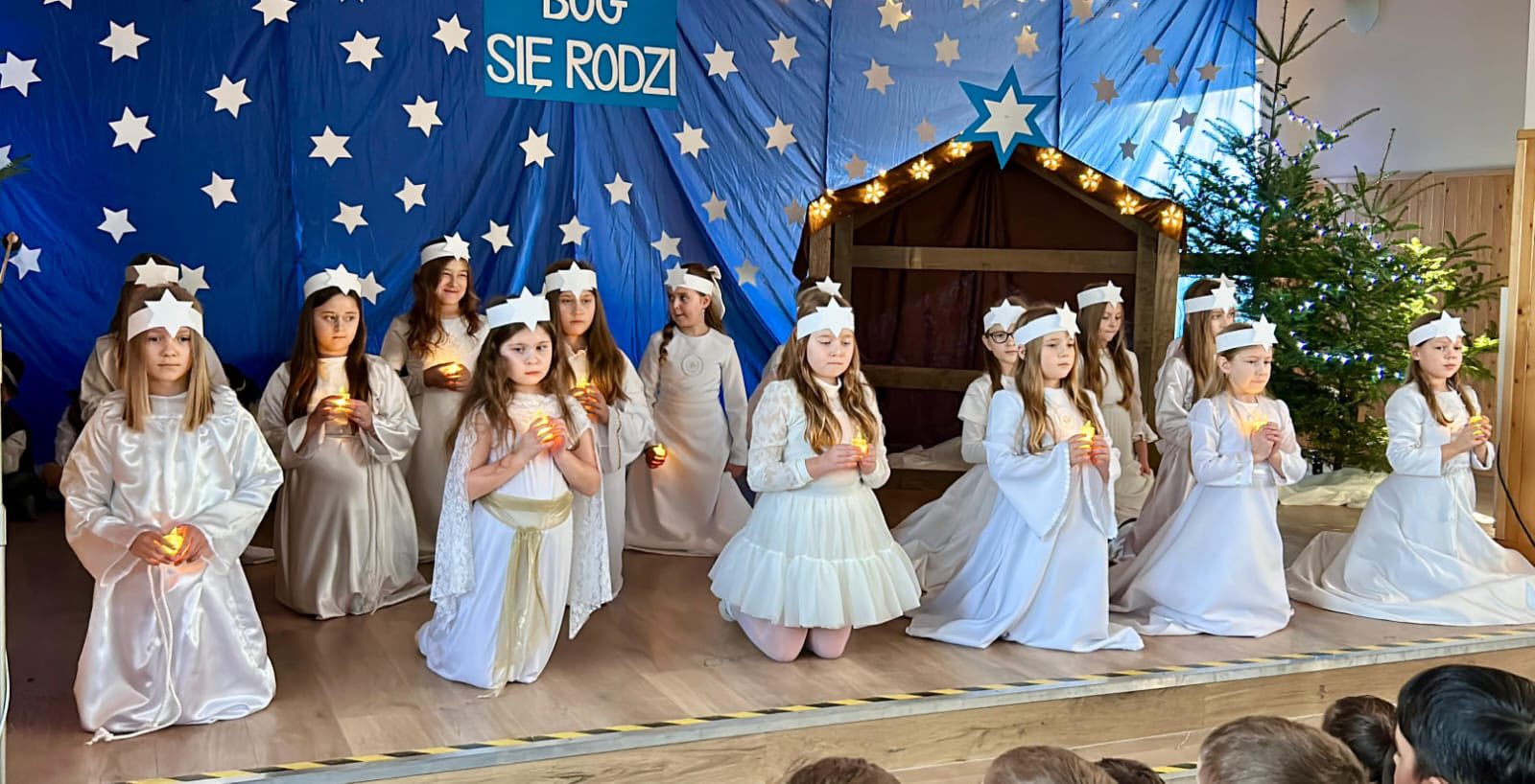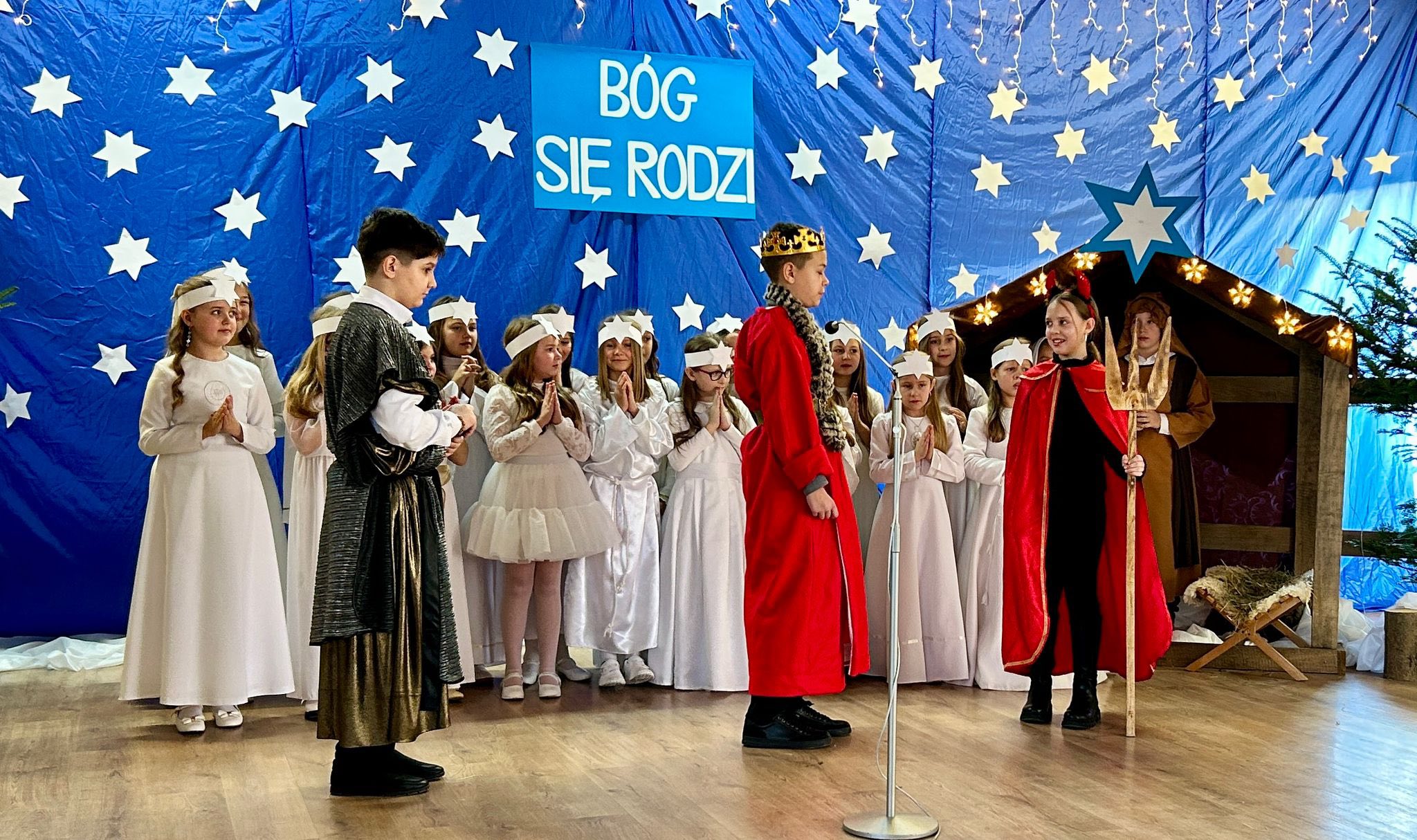Uczniowie klas 3a i 3b wraz z kolegami i koleżankami z klas starszych połączyli siły, by przypomnieć nam historię narodzin Zbawiciela.